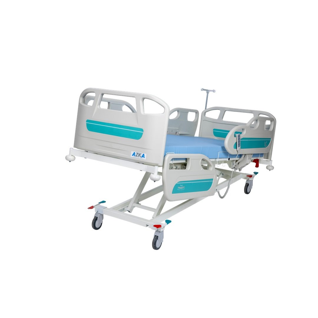 AZKA 4002 4 Motorlu ABS Korkuluklu Hasta Karyolası, hastane ve evde bakım ortamlarında kullanılmak üzere tasarlanmış, gelişmiş özelliklere sahip bir hasta yatağıdır. 125 kg net ağırlığında sağlam bir yapı sunar ve 160 kg taşıma kapasitesi ile geniş bir kullanıcı kitlesine hitap eder. RAL9010 Beyaz rengi ile hijyenik ve profesyonel bir görünüm