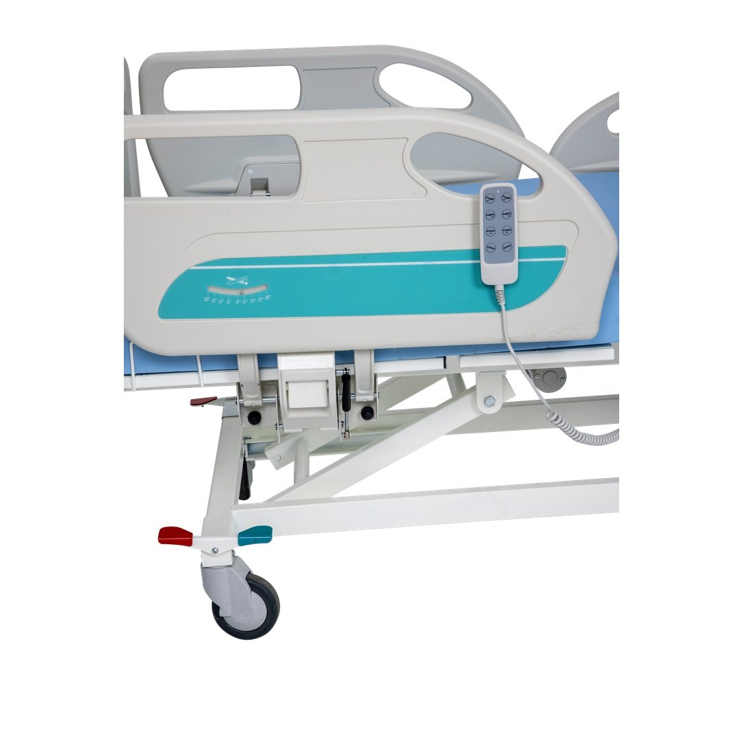 sağlar. 4 motorlu yapısı, sırt ve ayak açısını (0°-70° ve 0°-34°), yükseklik ayarını (345-800 mm, tahmini) ve trendelenburg pozisyonunu (12°) kumanda ile kontrol etme imkanı sunar. ABS malzeme (başlık, korkuluk, teker maşa), hijyenik ve dayanıklı bir yapı sağlar; korkuluklar amortisörlü mekanizması ile indirilip kaldırılabilir. 125 mm tekerlekleri kauçuk